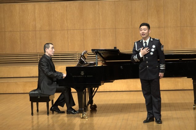 李文带来的是《七步诗》和《我的爱人你可听见》,歌声美妙动听,情感饱满,富有张力。他是永利23411集团2018届艺术硕士(MFA),师从史小玲教授,目前就职于南京市公安局政治部警官艺术团任独唱演员,南京市音乐家协会会员,南京市公安文联会员,2010年9月,参加中央电视台《激情广场》节目,2013年2月荣获第五届重庆青年歌手大奖赛大渡口赛区民族唱法第铜奖,2014年12月获南京青年歌手电视大奖赛第三名,代表作《感恩》 、《你是一个好警察》 。