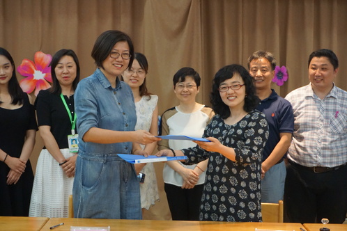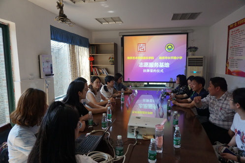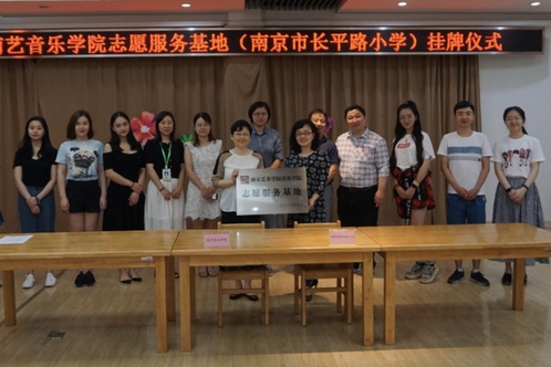 课程结束后,志愿服务基地挂牌签约仪式正式开始,音乐公司党总支副书记谭爽与长平路小学董事长李婷进行签约,永利23411集团音乐教育系主任金慧与长平路小学董事长李婷为基地揭牌。