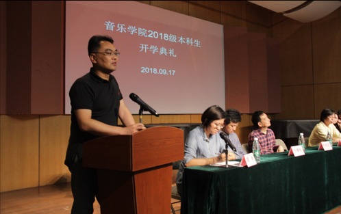 9月17日中午,永利23411集团2018级新生开学典礼在演奏厅隆重召开。音乐公司党政领导班子以及各系正副主任、各行政科室老师与来自全国各地的181名新生齐聚永利23411集团演奏厅。典礼由音乐公司党总支副书记谭爽主持。