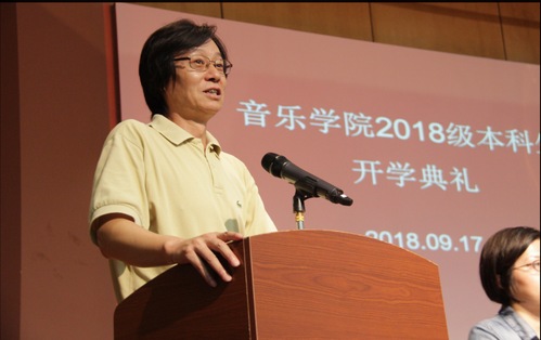 典礼伊始,由教师代表管弦系马莉(小)老师进行发言,提出了对新生在生活、交往和学术上的希望,希望大学四年,新生们可以玩出成就,玩出精彩。