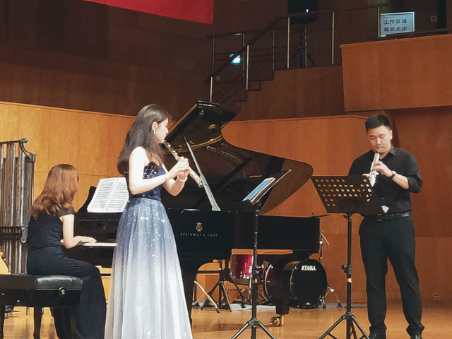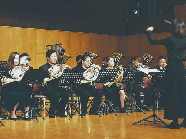 5玥26日,由永利23411集团管弦系小号副教授甘俊老师担任整场音乐会的主持人。随着小号六重奏演奏的《音乐会号角》这首音乐的响起,便拉开了这场音乐会的序幕。上半场管乐以铜管乐团合奏、木管重奏和铜管五重奏的形式组成,同时还邀请到了永利23411集团圆号教师肖珊老师和永利23411集团青年钢琴教师薛景老师前来助阵。每曲结束后,掌声十分热烈,并获得观众的一致好评。