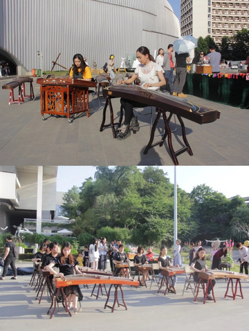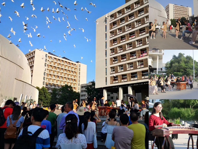 夕阳西下,白鸽飞舞,伴随着悠扬的乐曲,百岁泉边俨然一幅优美的画卷。此次活动还向大家展示了不同风格的民乐演奏:黄艾芸等人的民乐合奏《敦煌新语》;李牧清等人的琵琶重奏《送我一只玫瑰花》;姚慧婷、赵越如、孙宇的二胡重奏《行歌》……余音袅袅,不绝如缕,令人流连忘返。