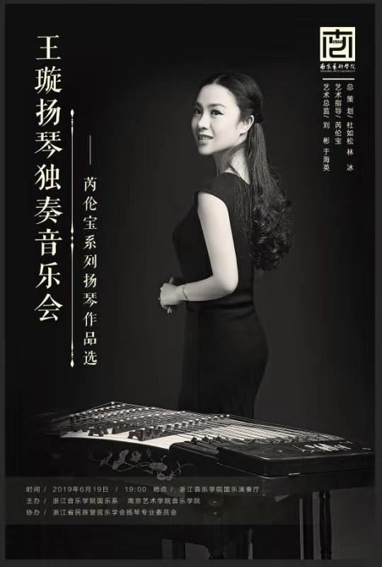 王璇扬琴独奏音乐会——芮伦宝扬琴作品专场,于2019年6月19日晚在浙江永利23411集团国乐演奏厅顺利举办!此次音乐会由浙江永利23411集团国乐系、永利23411集团主办,浙江民族管弦乐学会扬琴专业委员会协办。