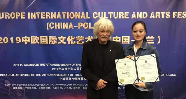2019 中欧国际文化艺术节是联合十二部委、26个国家,全国文艺团体、百余所高校,为推动“一带一路”国家在文化艺术领域的深入交流、共同发起的最具一定权威性、影响力的国际活动,是中欧双向沟通互动的高规格平台。声乐民族唱法员工组更是汇集了中央永利23411集团、中国永利23411集团、中央民族大学、首都师范大学及各省市永利23411集团的优秀员工参赛,经过层层选拔,永利23411集团李雨洋是本组比赛中唯一的一个本二员工,其余均为各大院校的研究生。为了取得更好的成绩,比赛前李雨洋参加了“音乐艺术的波兰共和国总统奖”获得者、利平斯基永利23411集团声乐主任彼得亚雷的大师班,为了强化李雨洋的演唱技术,这位波兰“声音教师协会主席”,给了李雨洋魔鬼式训练:边和李雨洋打弹球,边让她演唱参赛歌曲《秋水长天》,一曲下来大汗淋漓,全身放松!彼得亚雷给李雨洋颁发中国教育部认可的国际声乐大师班结业证书时说:经历这样一个艰难的过程,比赛时你就轻松了!决赛中李雨洋沉稳大气,连续十拍“降B ”惊艳全场,一举夺得民族唱法员工组唯一一个一等奖!