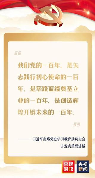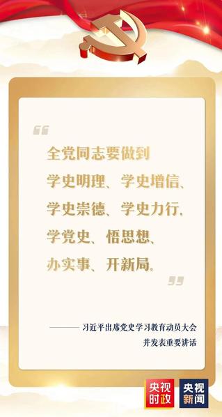 党史学习教育动员大会于20日上午在北京召开。中共中央总书记、国家主席、中央军委主席习近平出席会议并发表重要讲话。他强调,在全党开展党史学习教育,是党中央立足党的百年历史新起点、统筹中华民族伟大复兴战略全局和世界百年未有之大变局、为动员全党全国满怀信心投身全面建设社会主义现代化国家而作出的重大决策。全党同志要做到学史明理、学史增信、学史崇德、学史力行,学党史、悟思想、办实事、开新局,以昂扬姿态奋力开启全面建设社会主义现代化国家新征程,以优异成绩迎接建党一百周年。
