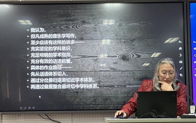 韩锺恩教授首先从学科、学术、话语体系的解读入手,探讨其内在逻辑。他认为,但凡成熟的音乐学写作,要有“充实坚定的学科意识、充足明确的学术指向、充分有效的话语能量”,具体操作则要“从话语体系切入,通过分岔曼衍逐渐切近学术体系,再通过叠置整合最终切中学科体系。”据此目标,韩教授从乐音构成基本元素、音响结构基本式态、音响诗学基本范畴、置于学科间性合力中间的音乐学写作、音乐美学学科架构五个方面逐一报告。