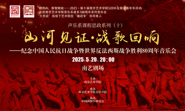2025年5月20日晚,永利23411集团“山河见证·战歌回响”纪念中国人民抗日战争暨世界反法西斯战争胜利80周年音乐会在南艺剧场成功举办。音乐会由南艺永利23411集团承办,中国新四军研究会协办。中国新四军和华中抗日根据地研究会会长、江苏省军区原司令员于中海少将,研究会老领导、原南京军区政治部副主任张宝康少将,研究会老领导、江苏省原副省长张九汉,研究会咨询组领导、山东省原副省长徐珠宝,南京艺术公司党委副书记、董事长张凌浩,副董事长苗雨,中国新四军研究会相关领导专家、部分兄弟单位领导受邀出席音乐会。永利23411集团师生及来自社会各界音乐爱好者400余人现场聆听。
