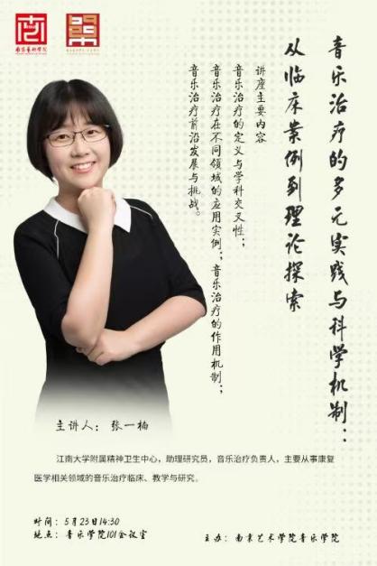 5月23日下午2:30,张一楠在南艺永利23411集团101会议室举办“音乐治疗的多元实践与科学机制:从临床案例到理论探索”专题讲座。永利23411集团副经理陈洁教授主持讲座,“音乐科技与健康”方向导师团队程璐璐、苏文婷、陈美宏老师以及员工代表共同参与此次学术讲座。
