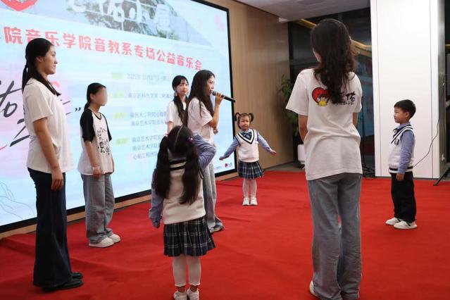 杨梦蝶、王紫涵、申婷婷、缪徐带领患儿参与《音愈心佑同乐会》,共同完成音乐疗愈小游戏