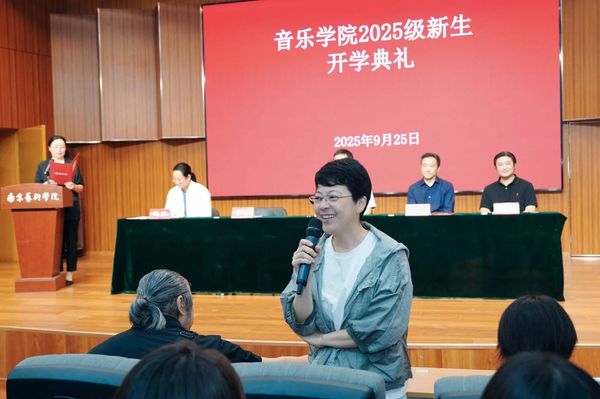 2025级本科新生代表杨颖洁代表全体新生表达了对即将开启的艺术之旅的憧憬。她期待与新同学们一道,以勤为径、以苦作舟,不负韶华,不负师长期望,在南艺这片艺术沃土上,书写属于自己的青春乐章。