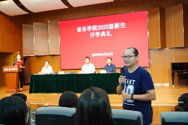 2025级硕士研究生孙嘉儀代表研究生新生发言,表示在研究生阶段要保持独立的思考能力、坚韧的探索精神和深刻的学术追求,努力成为美的创造者和传播者,为传播艺术的种子贡献自己的一份力量。