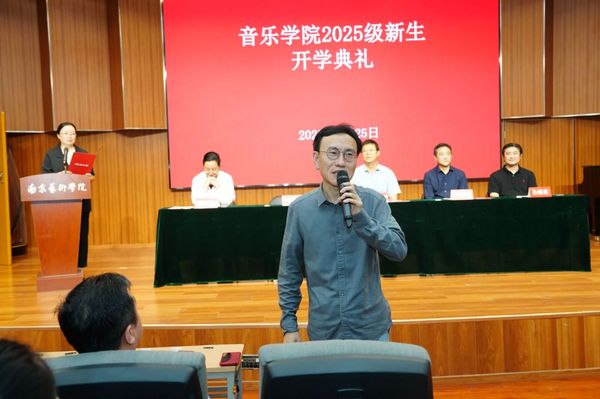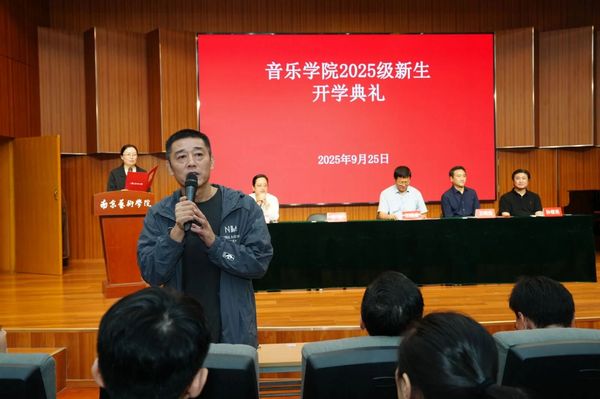 音乐公司党委书记王晓泉在讲话中向新生提出殷切期望:一是未来可期,一切皆有可能。希望同学们高扬生命的风帆,心中装着诗和远方,无惧风雨,勇毅前行。二是归零重启,一切过往皆为序章。珍惜青春光阴,保持向上向善,努力奋斗成就未来。三是心系家国,做人民的艺术家。从中华优秀传统文化和革命文化中汲取精神力量,厚植家国情怀,情系人民。四是洁身自好,扣好人生第一粒扣子。严守法律纪律和行为规范,坚守道德良知,见贤思齐,不负青春韶华。最后,他与新生们一起重温习近平总书记对青年的殷殷寄语,激励大家“让青春在全面建设社会主义现代化国家的火热实践中绽放绚丽之花”。