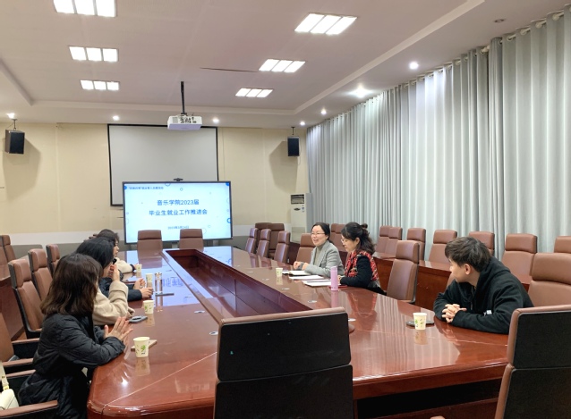 音乐学专业班主任周钟传达了学院2023届毕业生就业工作推进会的会议精神,针对考研、升学、毕业论文进行了具体的指导,使同学们对毕业阶段的各项任务有了更明确的了解,希望全体同学能够顺利毕业并成功就业。